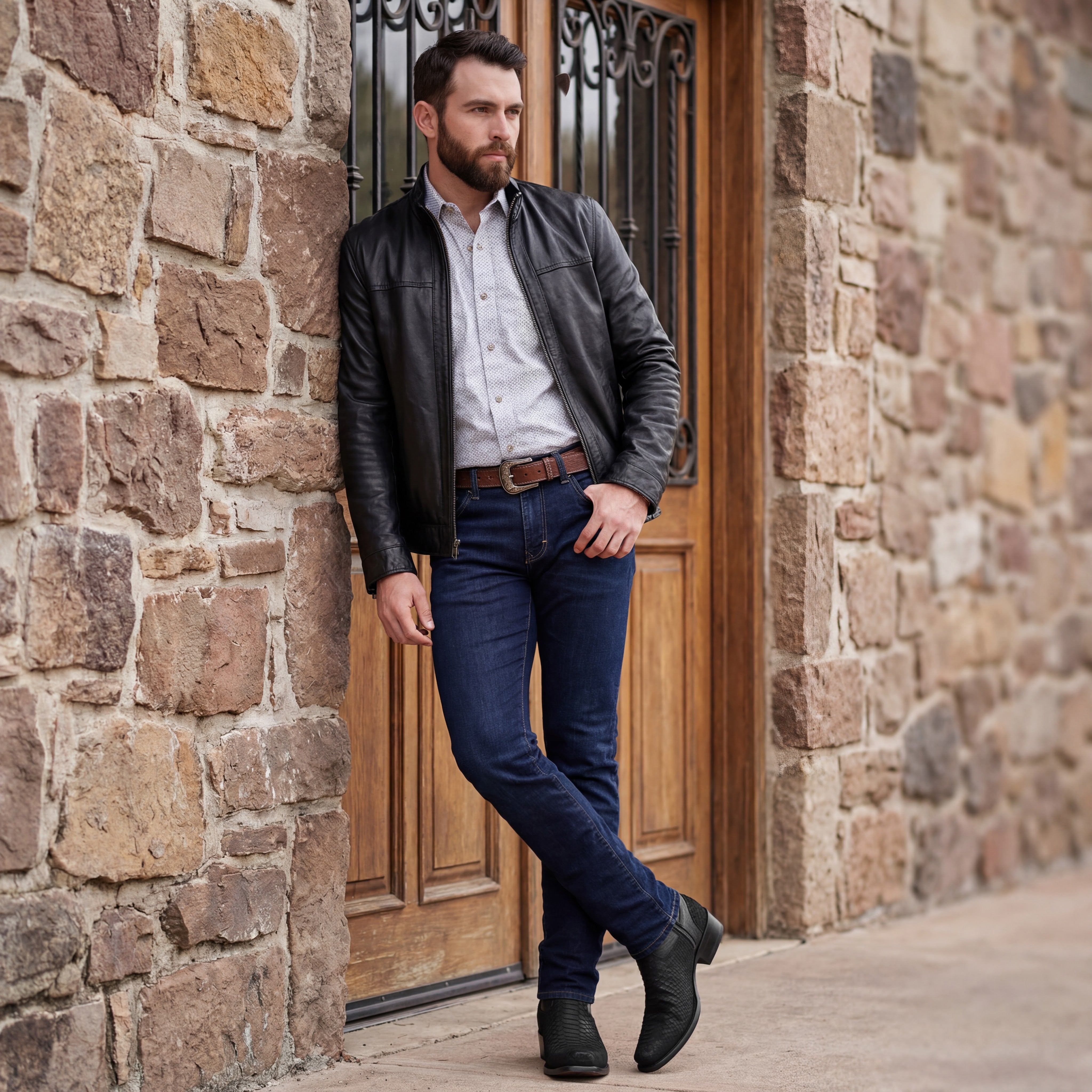 Men’s Leather Western Cowboy Boot With Embossed Python Print