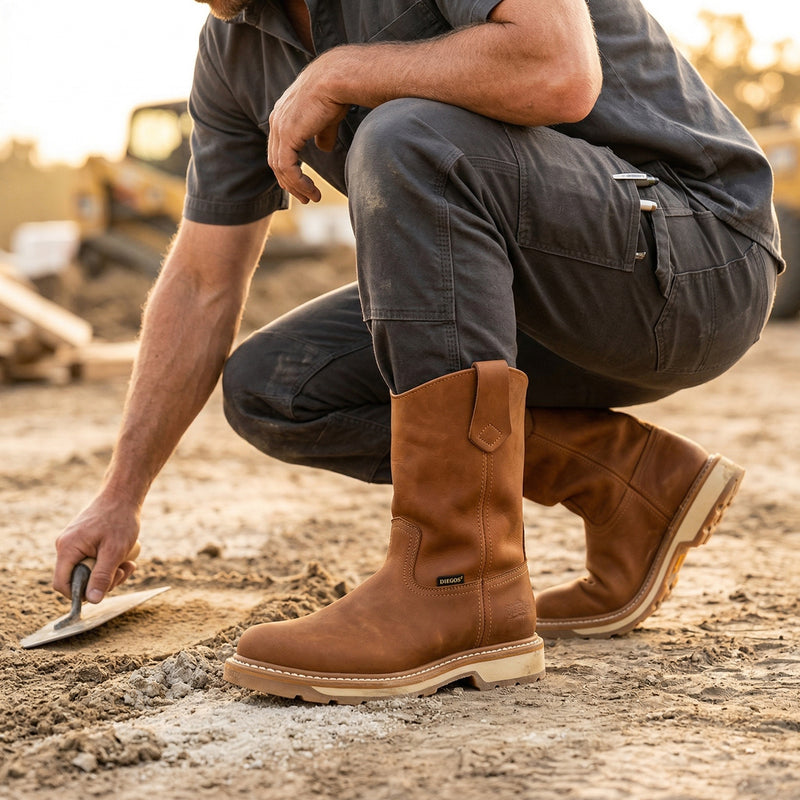 Men's Pull On Leather Mid-Calf Soft Toe Work Boot