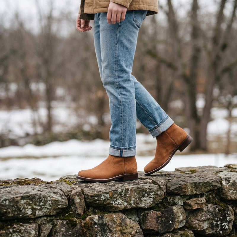 Men's Square Toe Ankle Western Cowboy Boot Dress Ankle Chelsea Boots