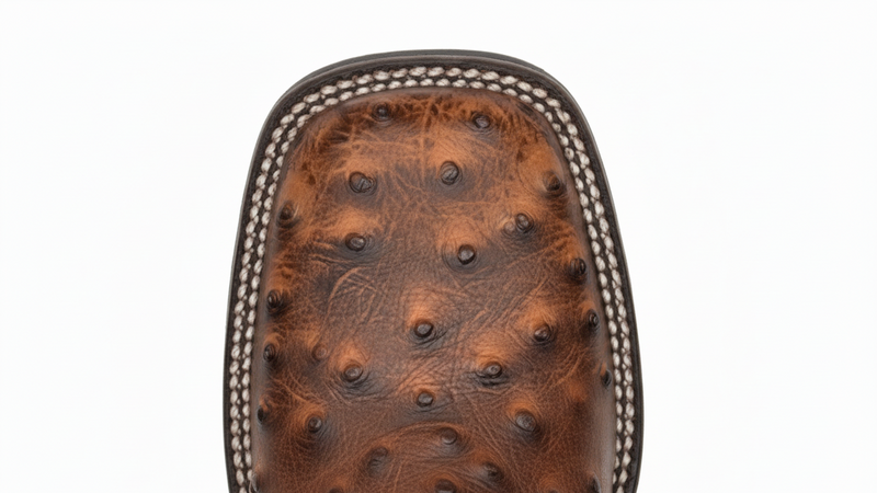 Men's Leather Ostrich Quill Print Square Toe Western Cowboy Boot