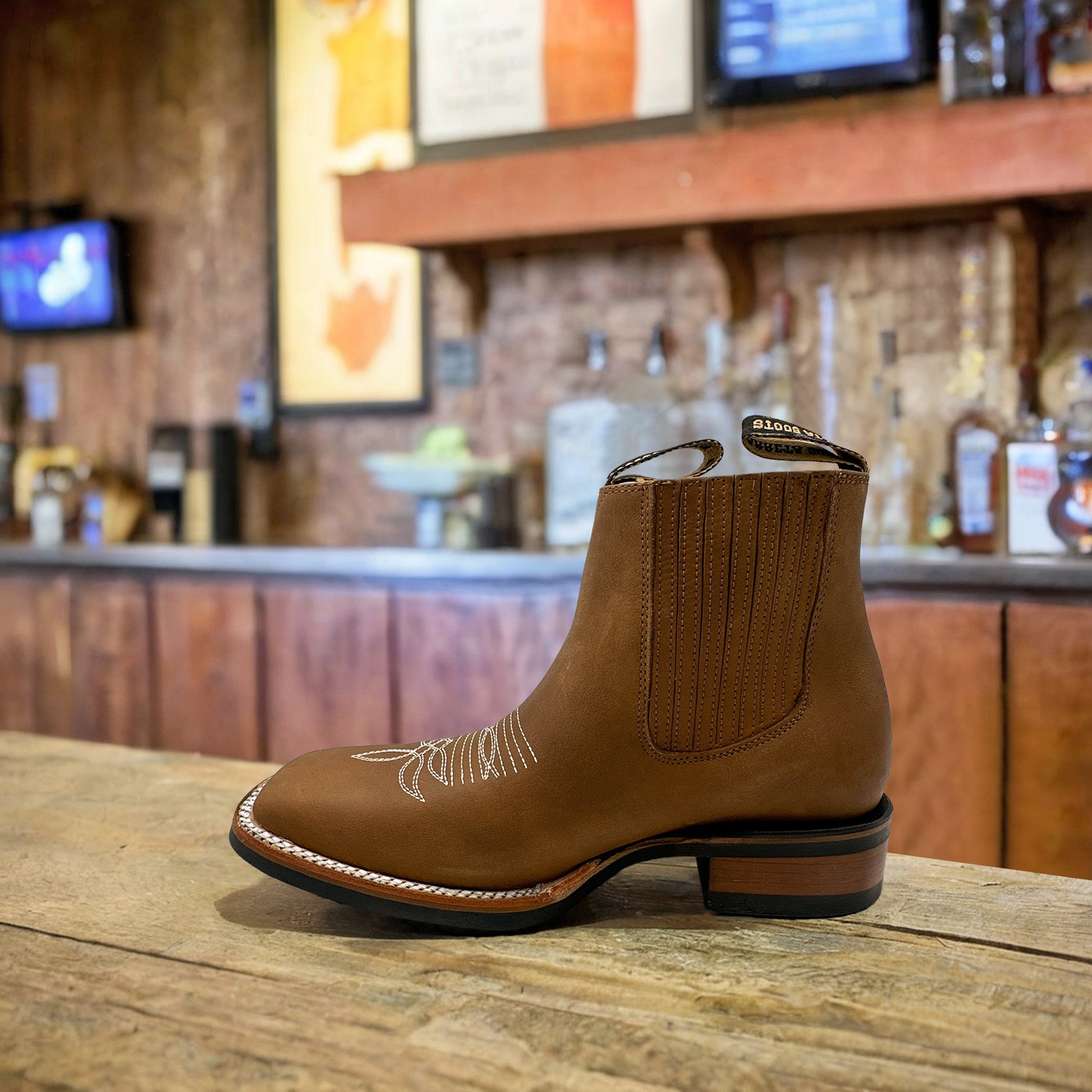 Men’s Genuine Leather Square Toe Short Ankle Cowboy Boot