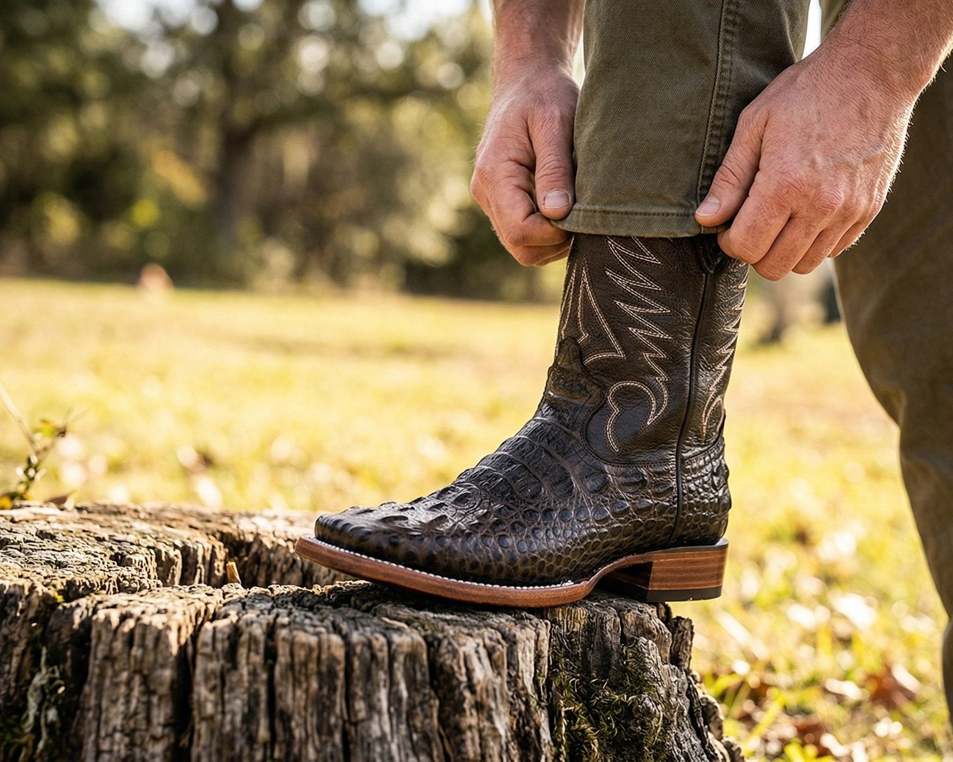 - Men’s Genuine Leather Crocodile Alligator Print Cowboy Boots