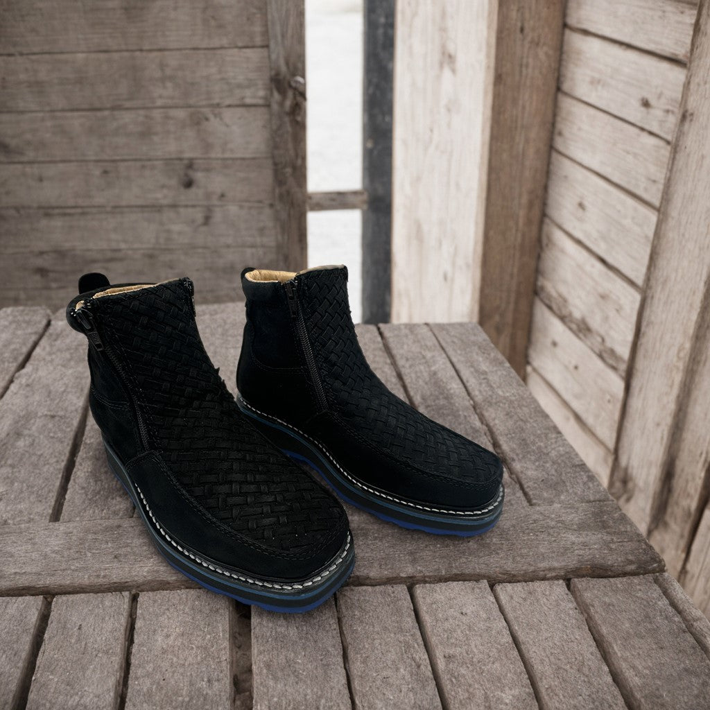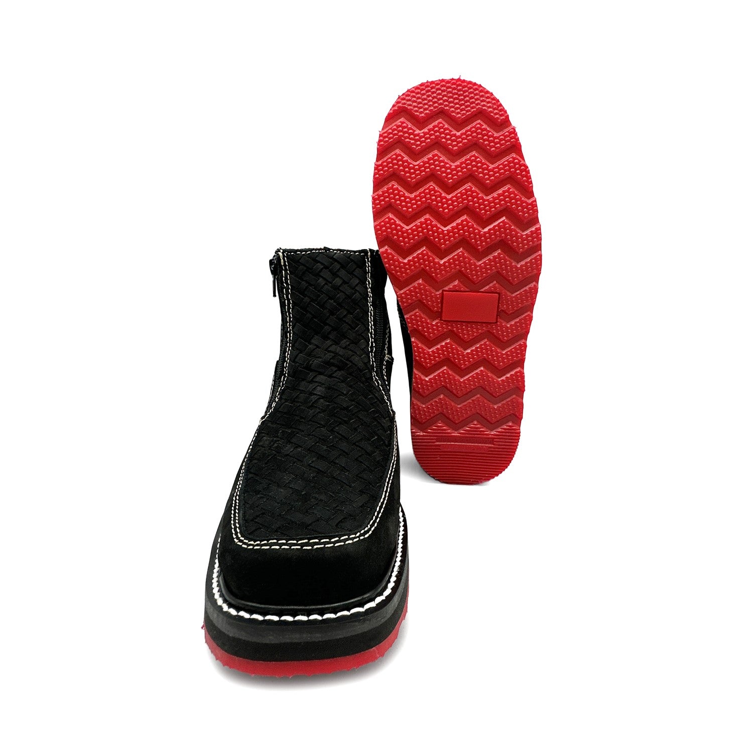 - DESIGN: Men’s Detailed Hand Woven Western Cowboy Boot | Unique and Meticulous Petatillo Pattern | Ankle Length | Square Toe