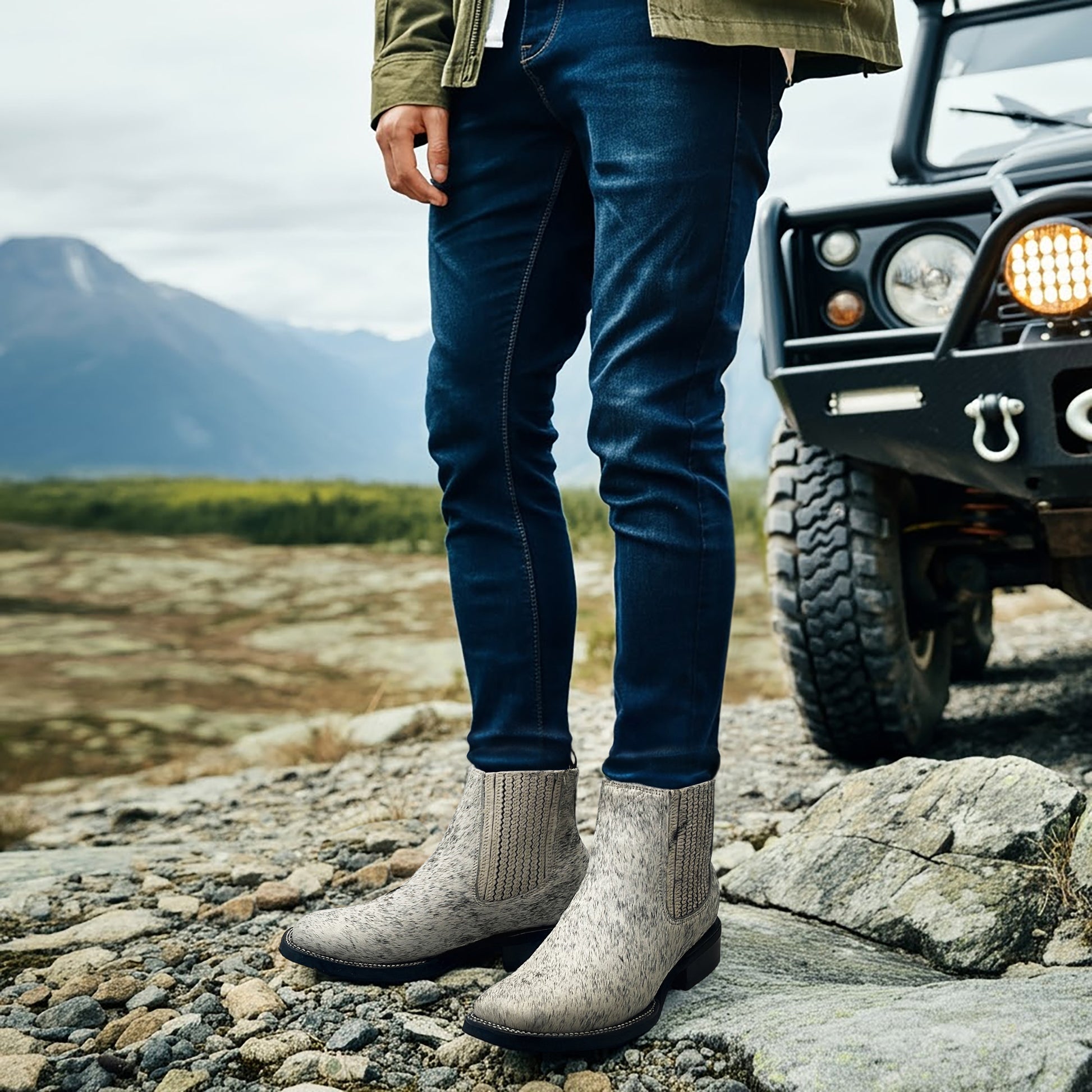 - DESIGN: Men’s Ankle Western Boot |Pony Hair Chelsea Boot | Ankle Length | Square Toe