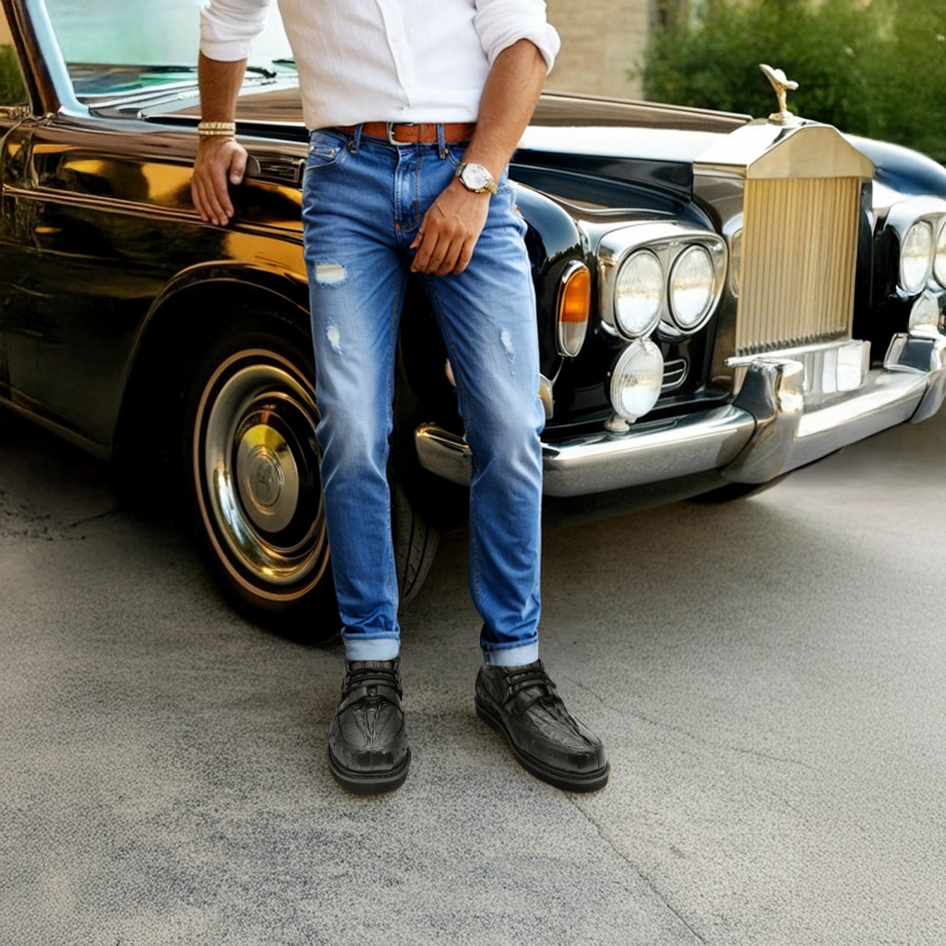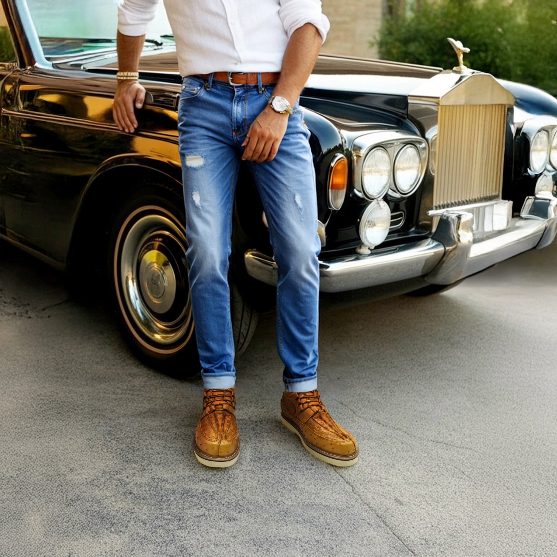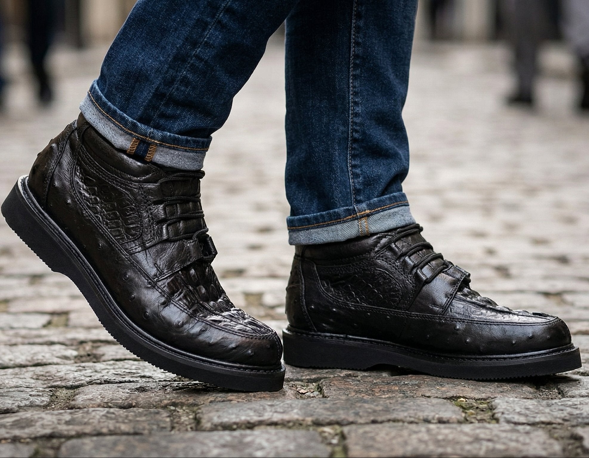 - DESIGN: Mens Leather Lace Up Shoe |Embossed Ostrich Crocodile Print Design | Ankle Length | Round Toe