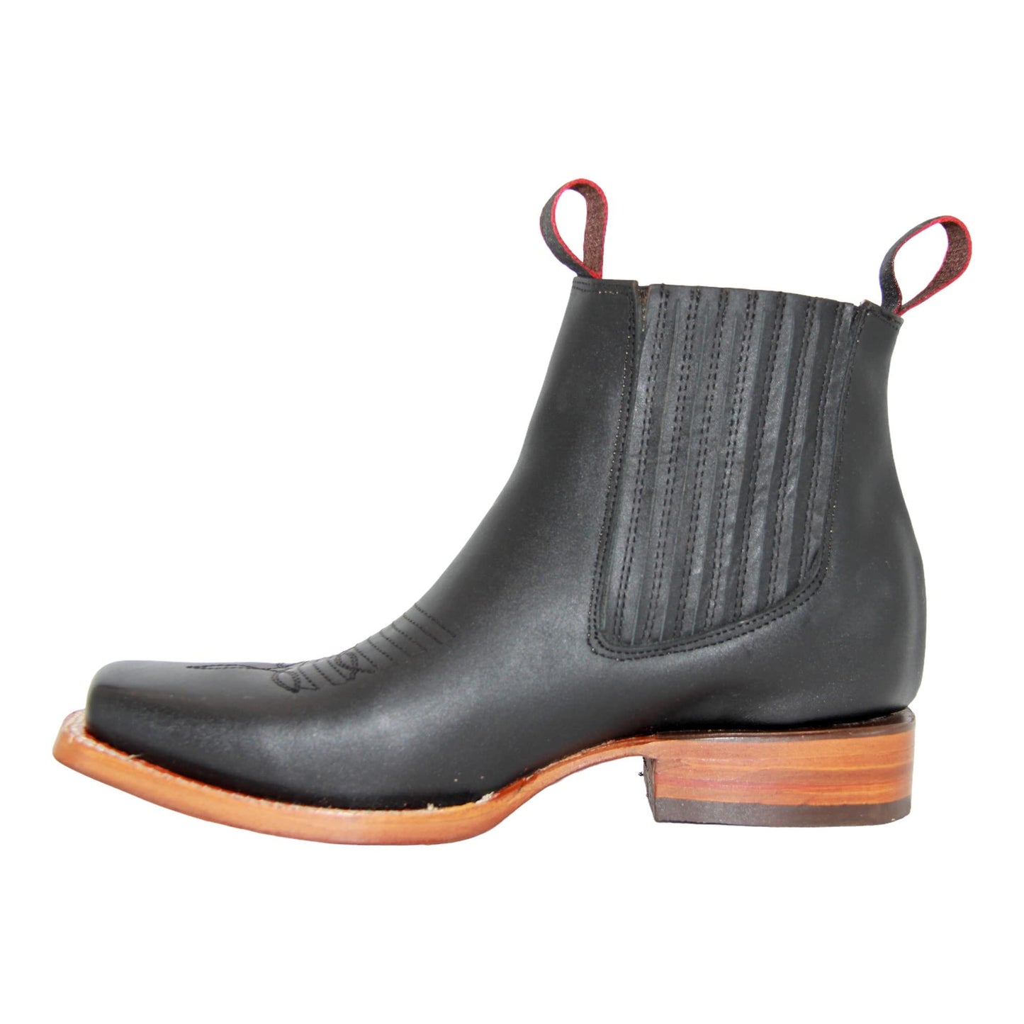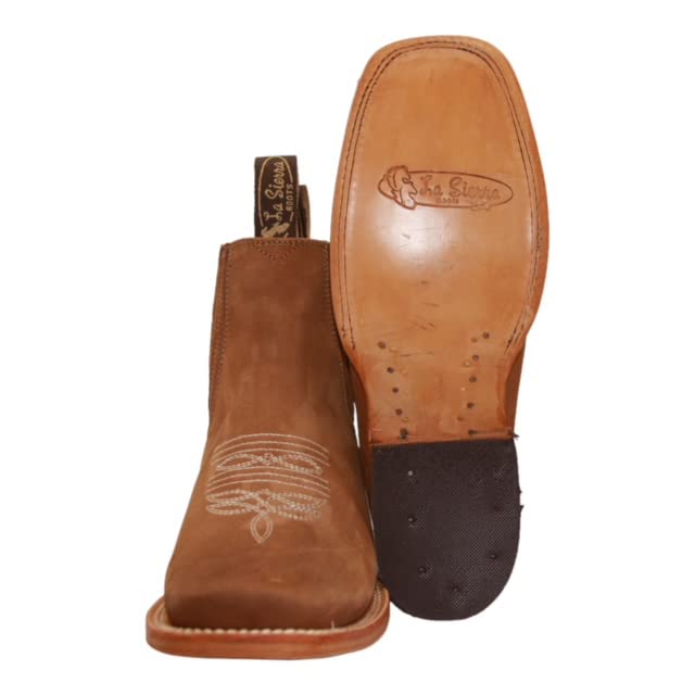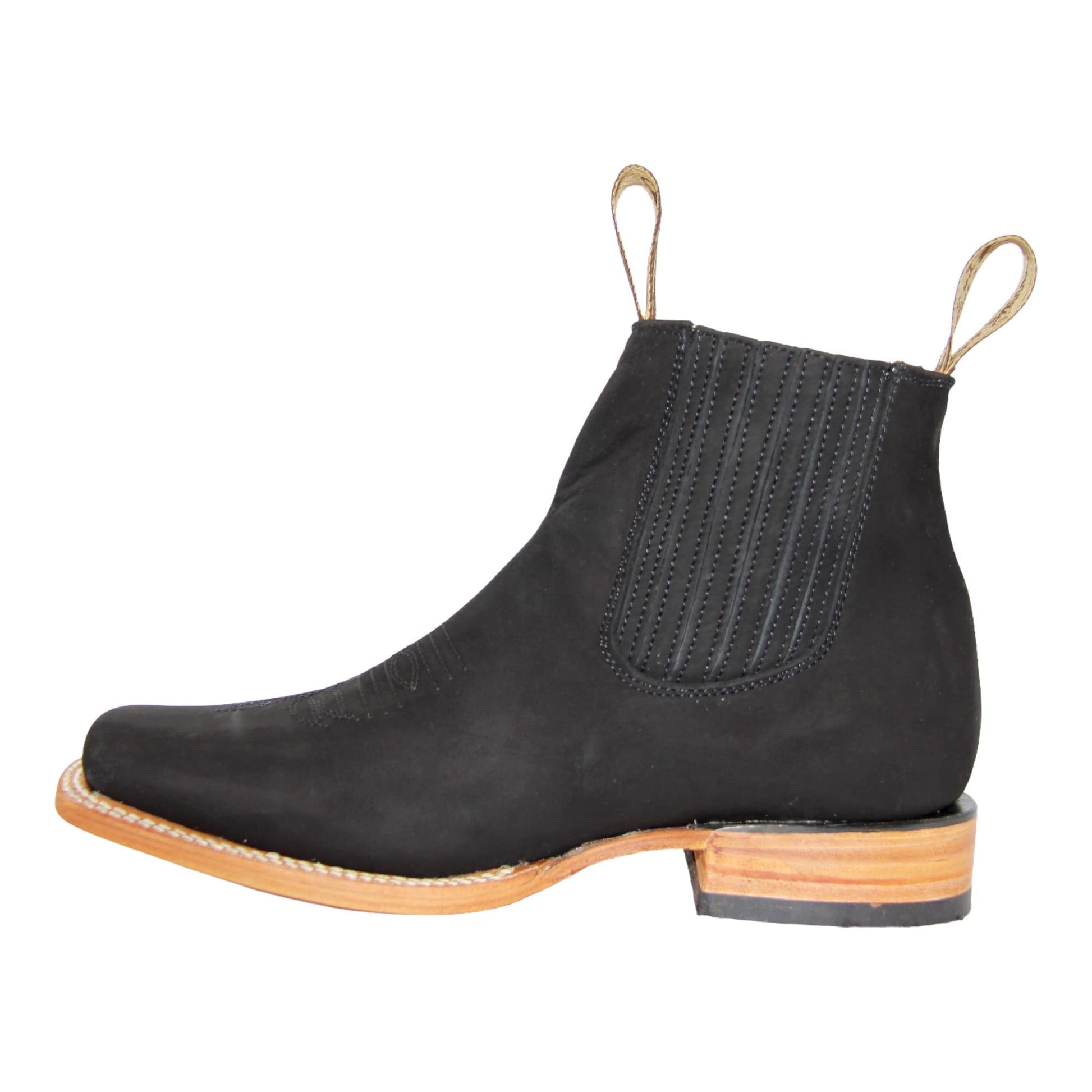 Men's Genuine Leather Square Toe Short Ankle Cowboy Boot