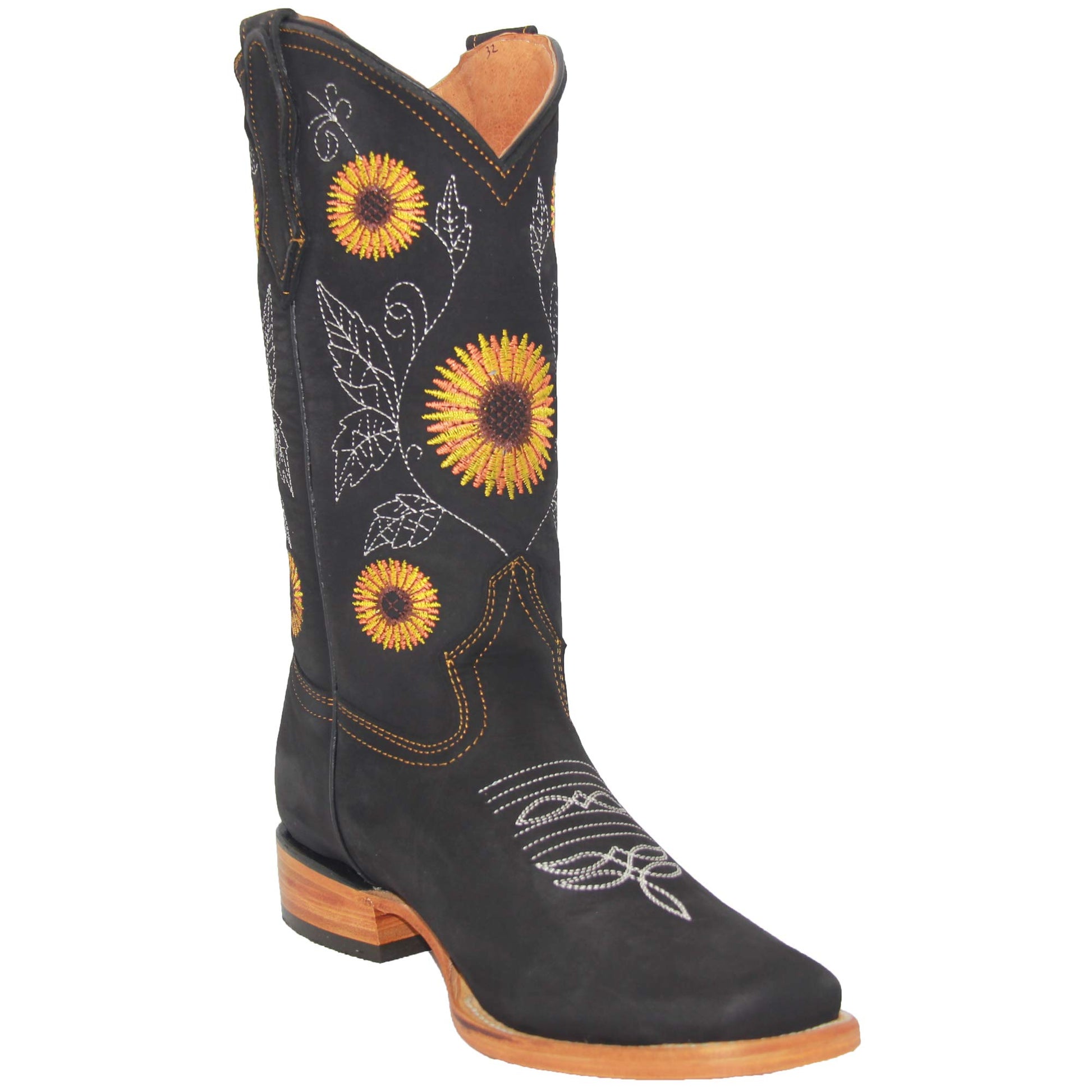 - Women’s Square Toe Genuine Leather Sunflower Embroidered Western Cowgirl Boot. Available In Three Beautiful Colors.