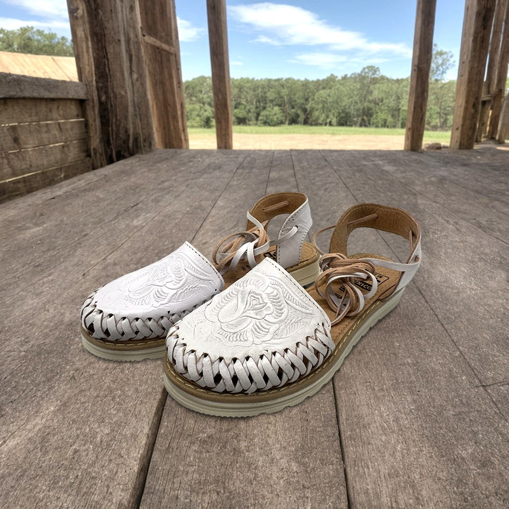WOMEN’S LACE UP ENGRAVED LEATHER MEXICAN HUARACHE SANDAL